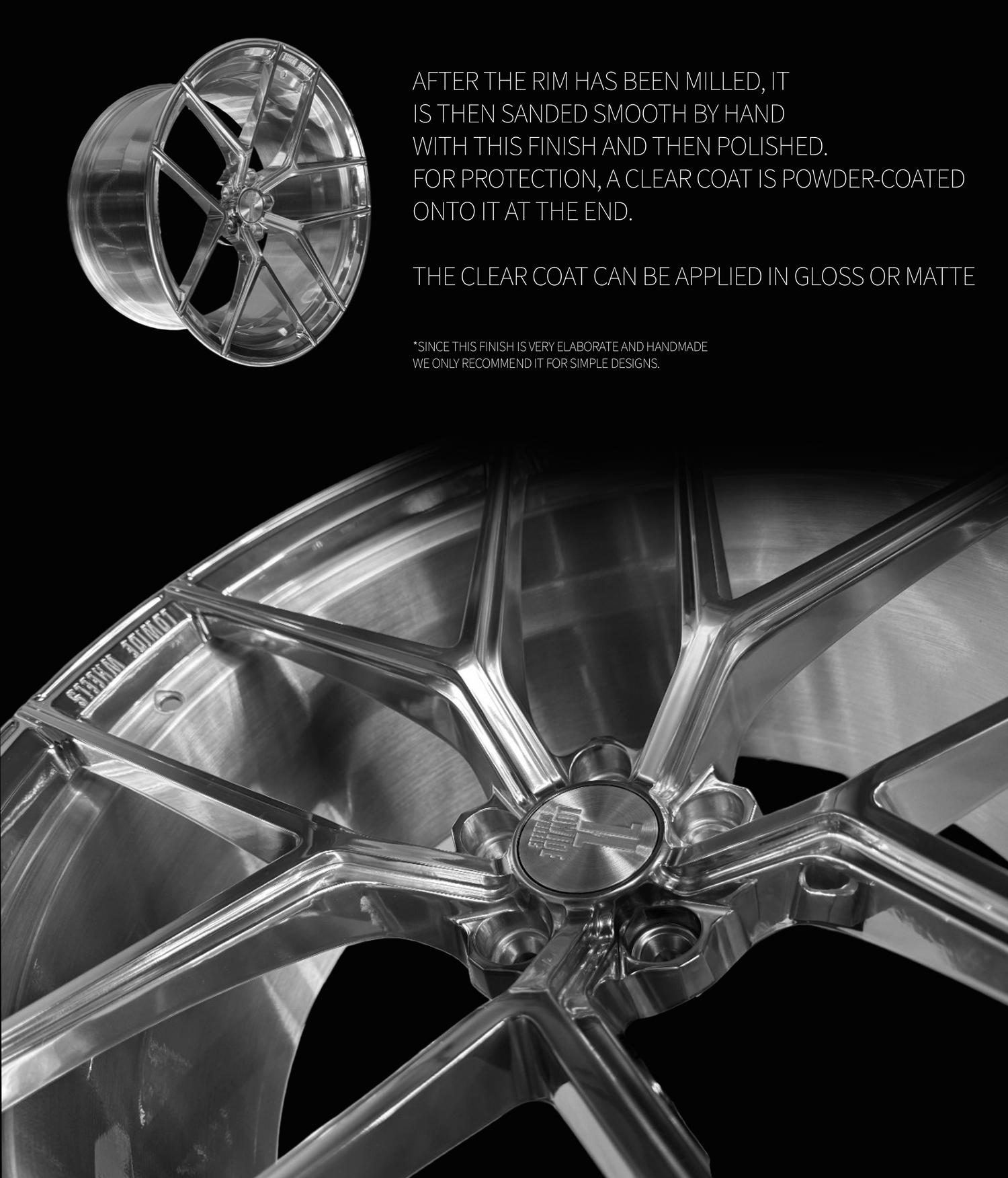 In the context of forged wheels, a polished finish involves a meticulous process where the surface of the wheel is ground and then polished to achieve a reflective, mirror-like quality. This process can significantly improve the visual impact of the wheel, making it a favored option for those seeking to elevate the appearance of their vehicles.